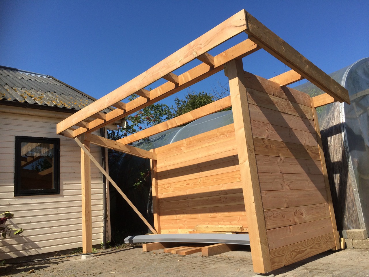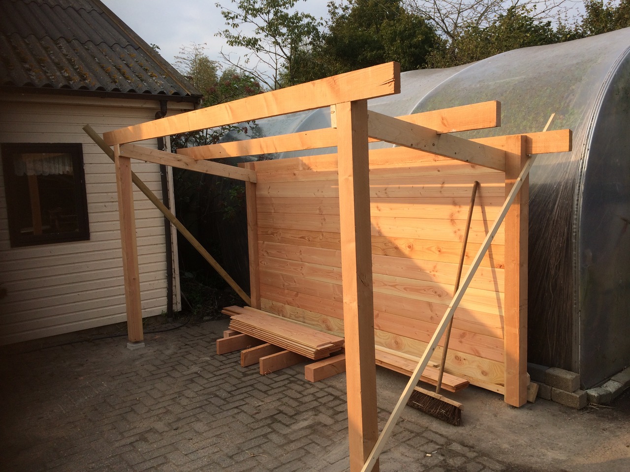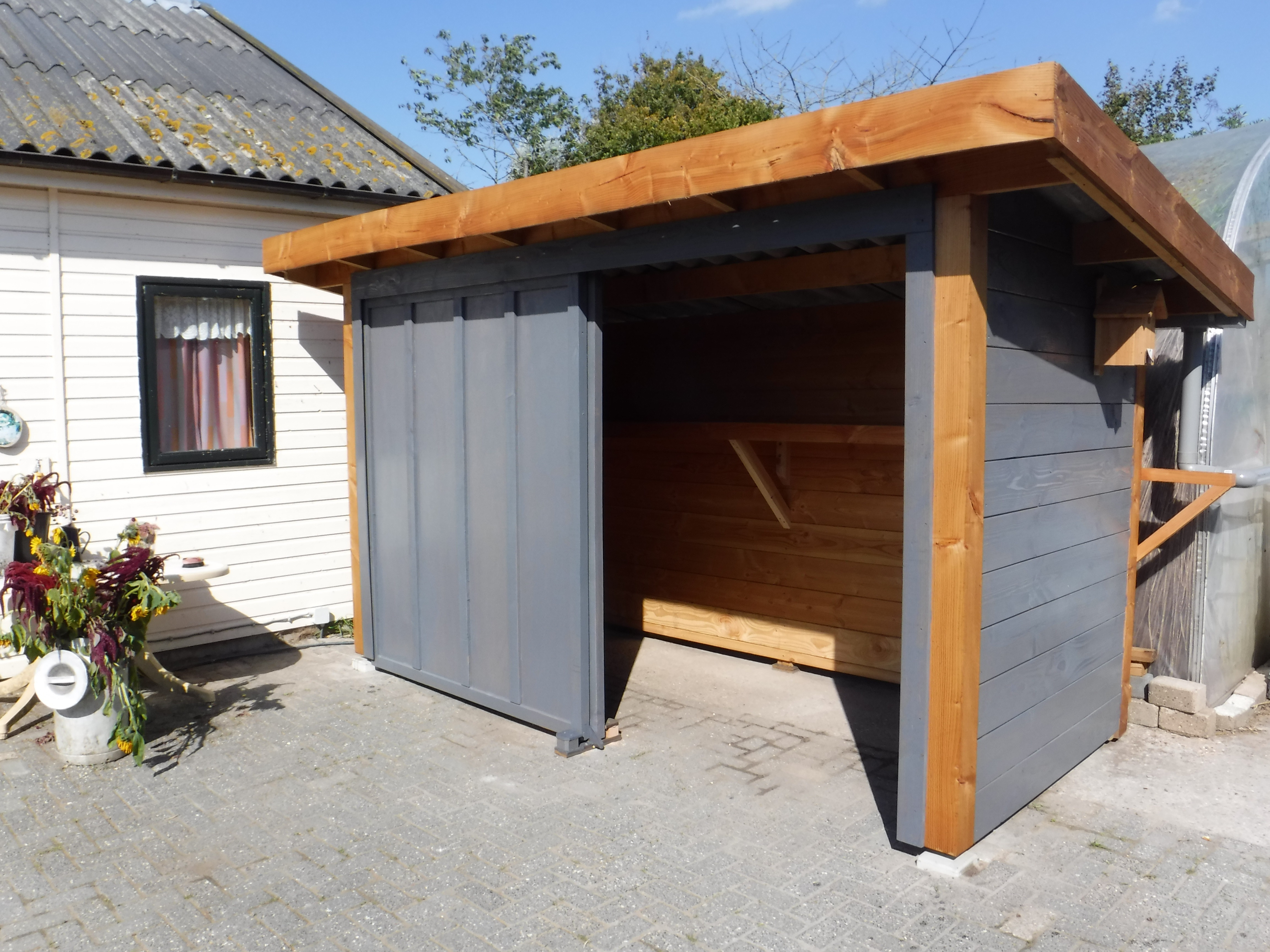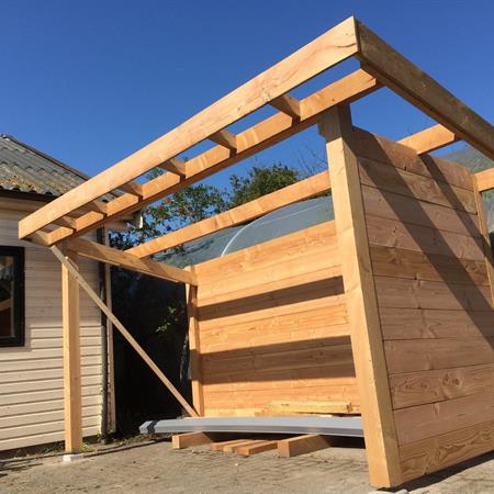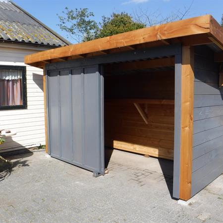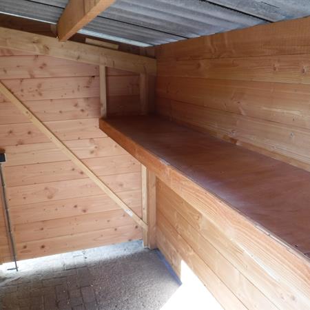 De educatieve zorgboerderij De Huif in Lelystad was op zoek naar een stallingsruimte voor rollators, een scootmobiel en tuinstoelen. In goed overleg met de opdrachtgever is deze stallingsruimte op maat gerealiseerd . Het bouwwerk is voorzien van een grote opbergplank, twee grote schuifdeuren, elektra en led-verlichting.
